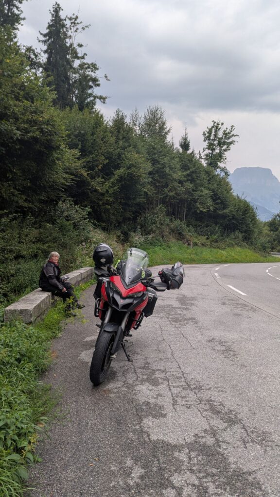 Vi havde ingen planer, andet end køre nogen pæne steder. Bjergene sætter dog nogen begrænsninger, og vejene går oftest hvor det er nemmest at lave dem. Vores navigations app, Calimoto, er dog rigtig god til at finde omveje, så vi kom ud på nogen rigtig små veje. Det ville have været sjovere hvis ikke franskmændene netop havde lappet en lang strækning ved at fylde nogen løse småsten i vejenes mange huller. Da det samtidig var blevet regnvejr, blev det lidt anstrengende at køre på de små krøllede veje.