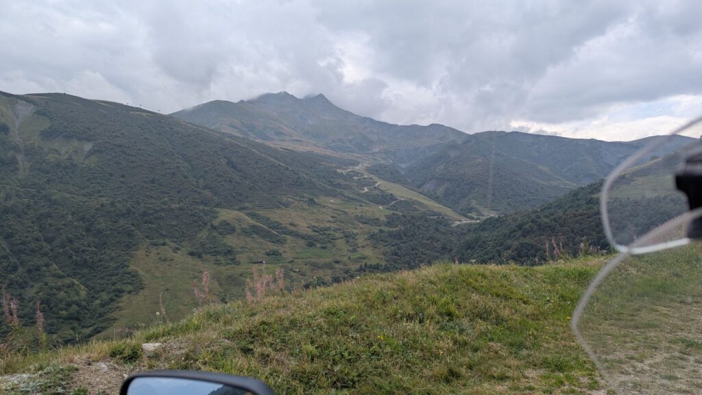 Vejen førte os nu mod Col de la Madeleine, et pas i 1993 meters højde. Det var et storslået landskab, og med tunge grå skyer, skulle man næsten tro vi var i Skotland.