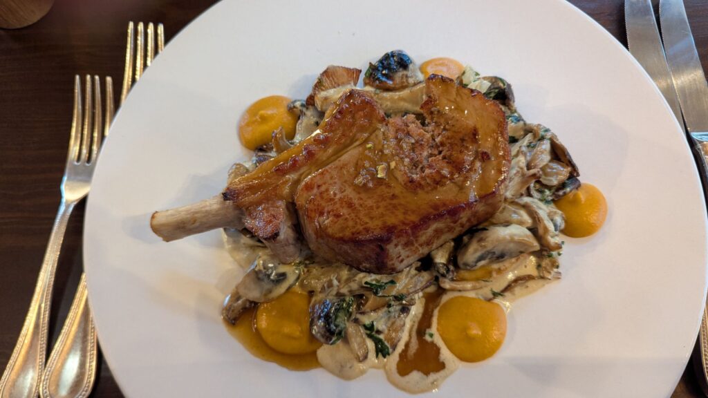 Vi havde glædet os til dejlig mad, for den del blev der gjort meget ud af på deres website. Problemet var blot at den var lukket for tiden. Heldigvis havde nabohotellet en åben restaurant, og de kunne i hvert fald lave mad… 😋